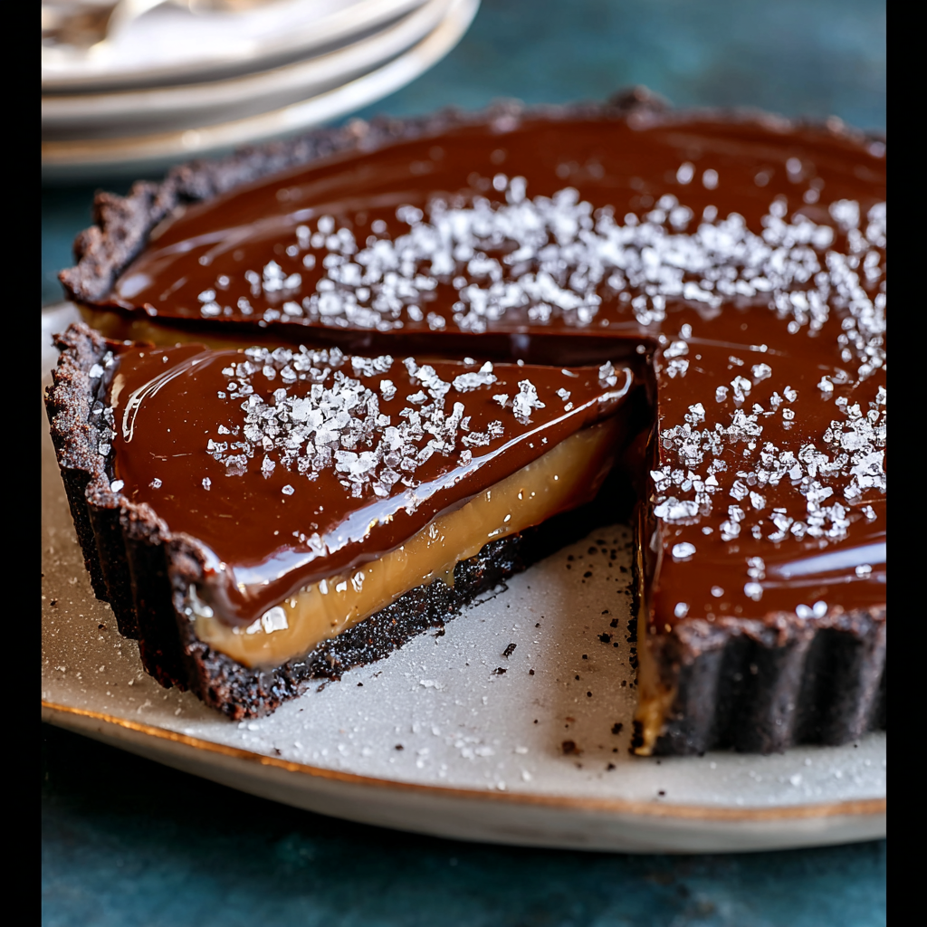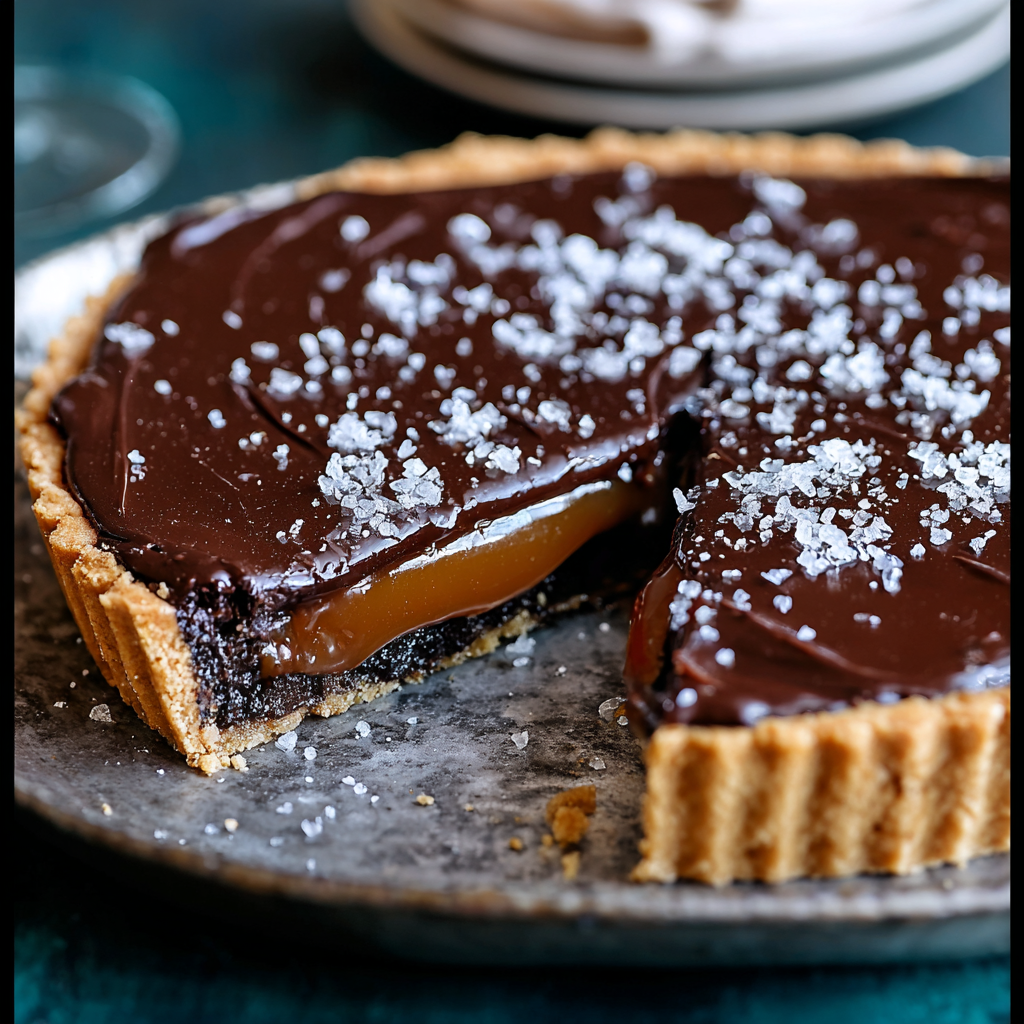 Refrigerate your tart for at least one hour before serving. Sprinkle additional flaky sea salt on top just before slicing for that perfect finish!